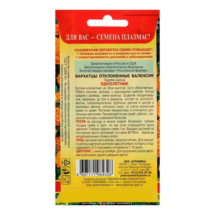 Семена Бархатцы низкорослые "Валенсия", 45 шт