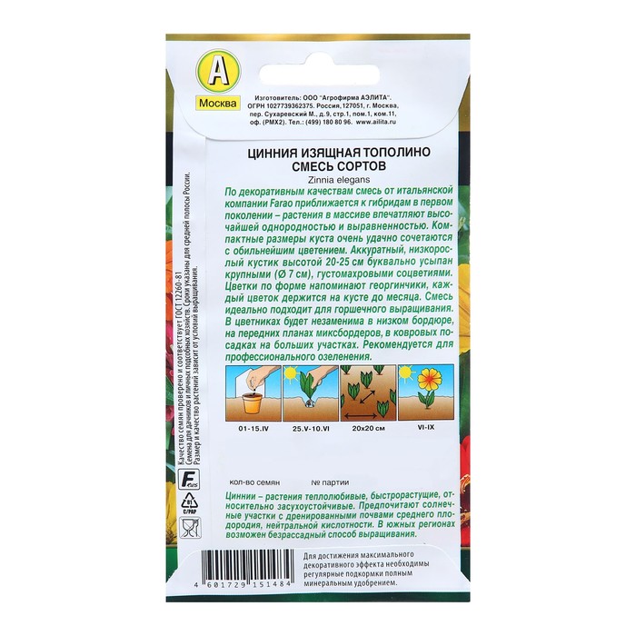 Семена Цинния Тополино, смесь сортов Одн Сел. Farao Золотая серия Ц/П 12шт