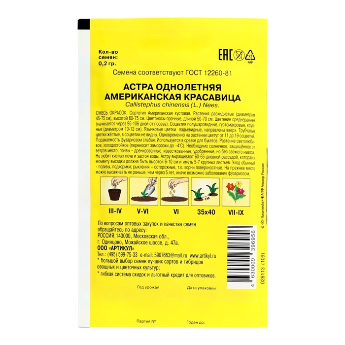 Семена цветов Астра однолетняя "Американская красавица", 0,2 г