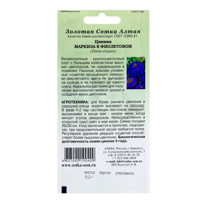 Семена цветов Цинния "Маркиза в Фиолетовом", 0,2 г