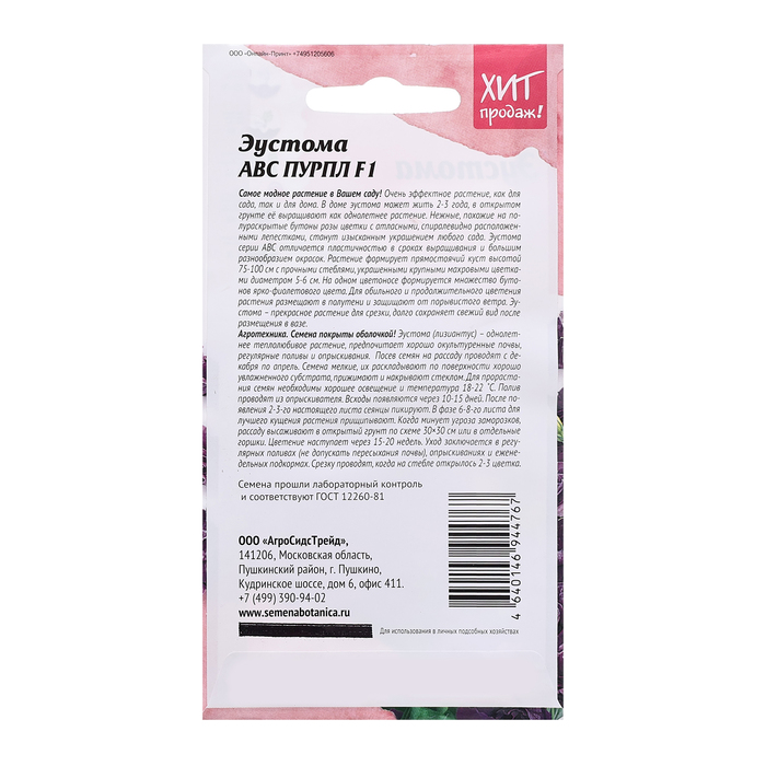 Семена цветов Эустома "АВС Пурпл комнатная", 10 шт