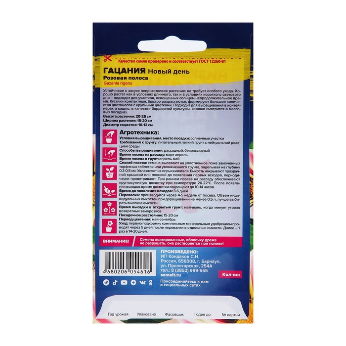 Семена цветов Гацания Новый день «Розовая полоса», ц/п, для балкона, веранды, цветника, однолетник, низкорослая, ц/п, 5 шт.