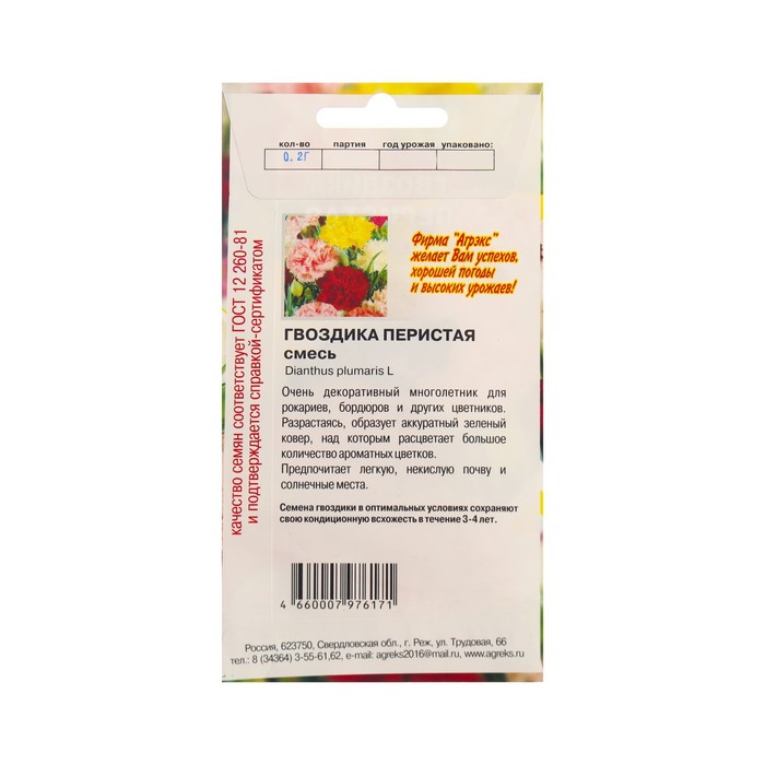 Семена Цветов Гвоздика перистая, смесь окрасок, 0.1 г