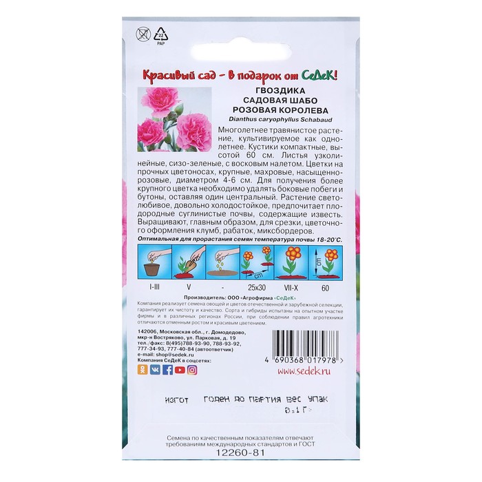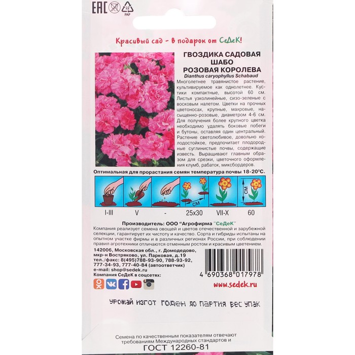 Семена цветов Гвоздика "Розовая королева "0.1 г