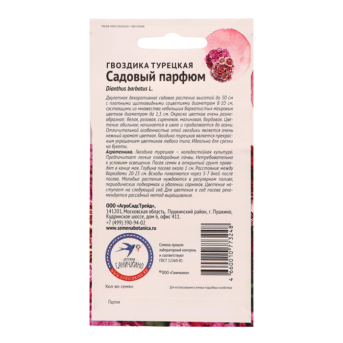 Семена цветов Гвоздика турецкая "Садовый парфюм", 0,1 г