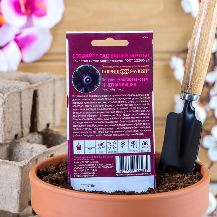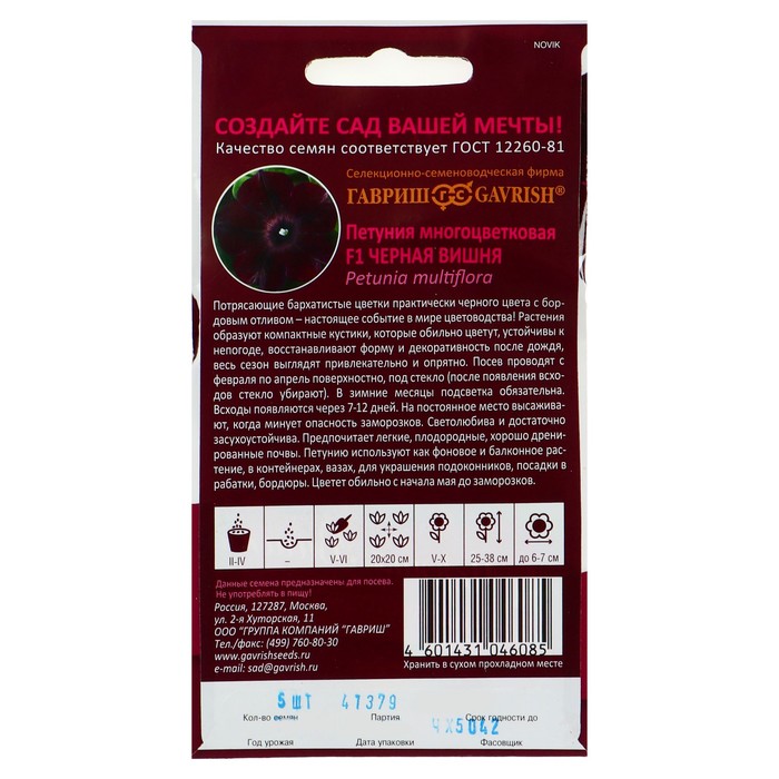 Семена цветов Петуния "Черная вишня" F1 многоцветковая, О, гранулы, пробирка, ц/п,4 шт.