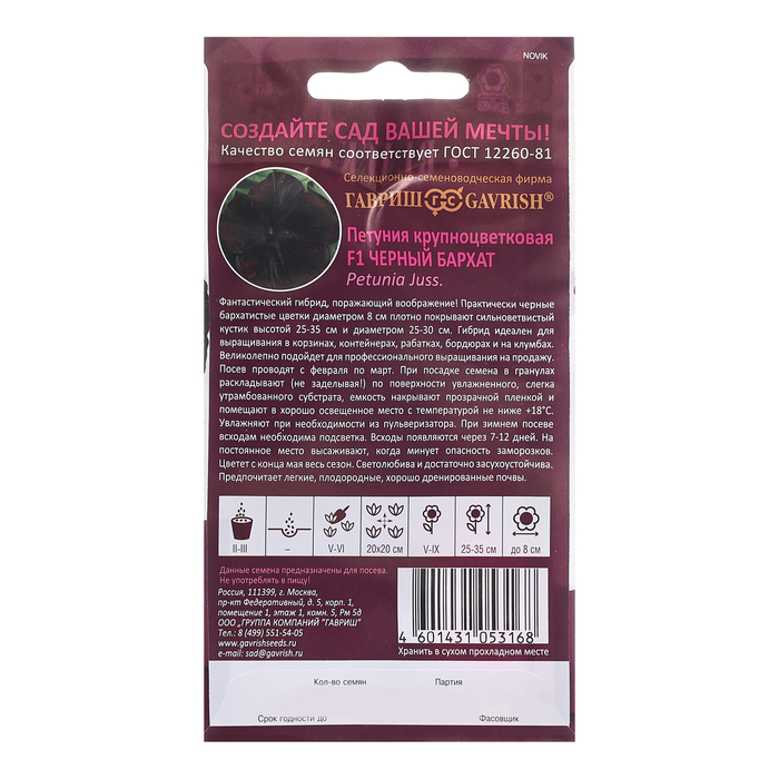 Семена цветов Петуния "Черный бархат" F1 крупноцветковая, О, гранулы, пробирка, ц/п, 4 шт.