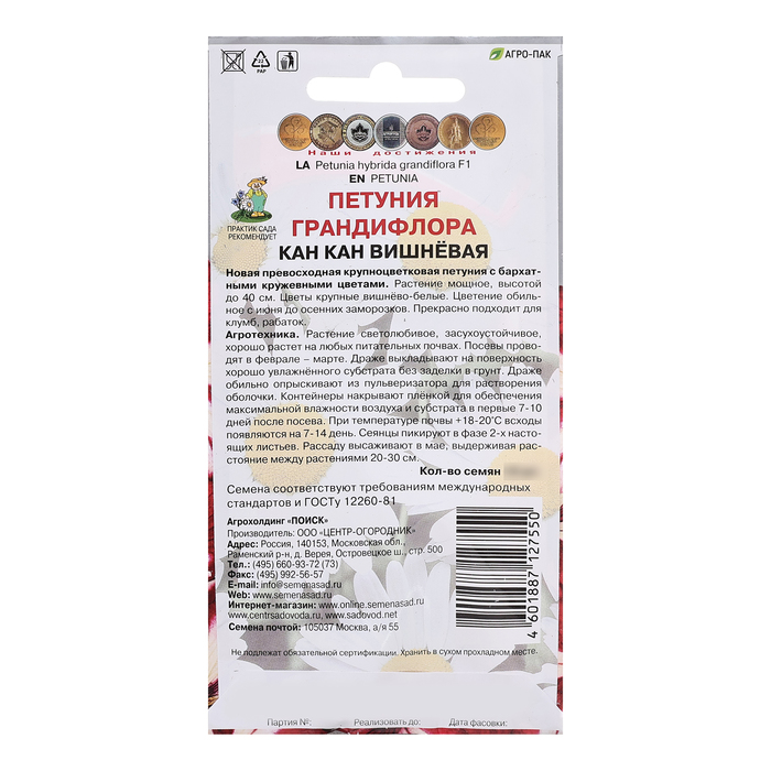 Семена цветов Петуния грандифлора "Как кан", вишнёвая, 10шт