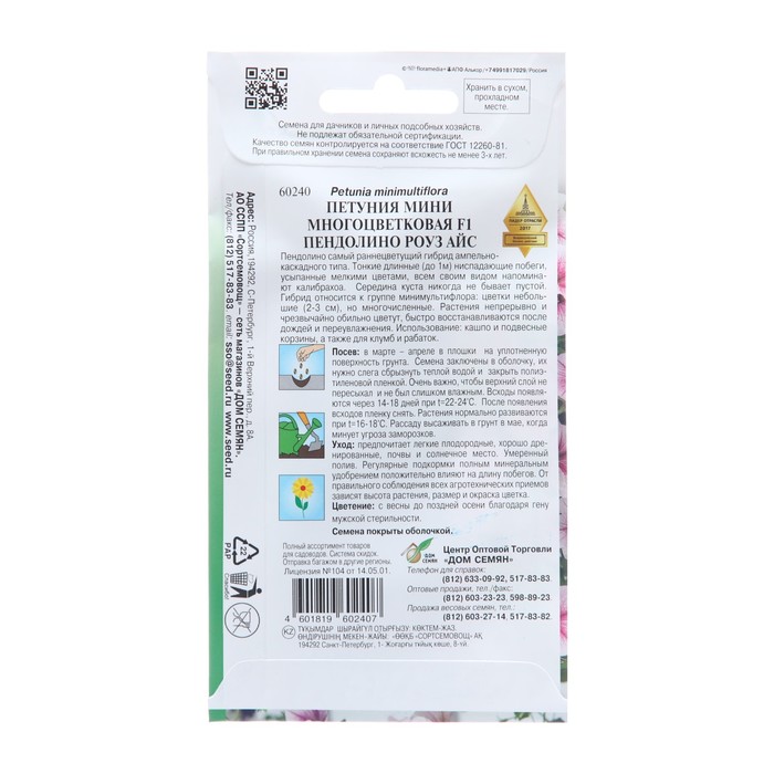 Семена цветов Петуния мини многоцветковая "Пендолино Роуз Айс F1" F, 5 шт