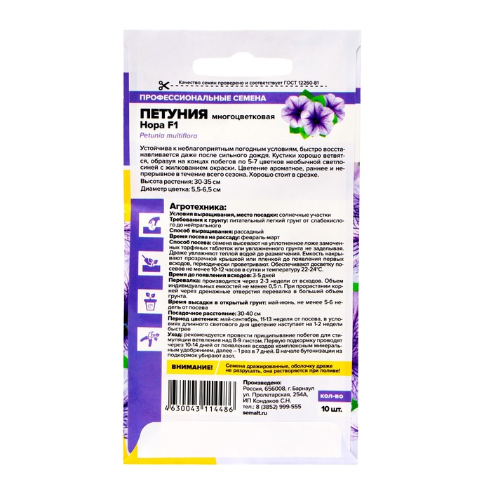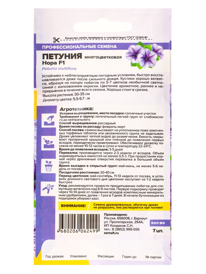 Семена цветов Петуния «Нора», низкорослая, многоцветковая, 7 шт., «Семена Алтая»