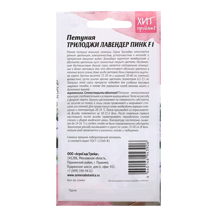 Семена цветов Петуния "Трилоджи Лавендер Пинк", 5 шт