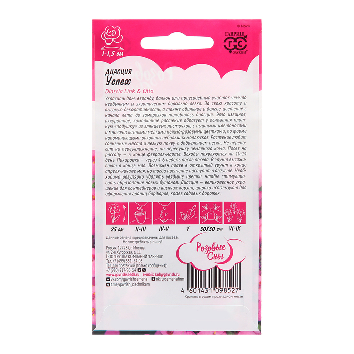 Семена Диасция «Успех», 0.01 г, «Гавриш»