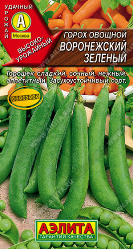 Скороспелый, лущильный сорт с дружным созреванием бобов. Относится к мозговым сортам, которые дают самый сладкий горошек высшего качества. В биологической спелости семена морщинистые. Период от полных всходов до технической спелости горошка 42-54 дня. Растения высотой 50-70 см. На растении формируется 12-18 бобов с хорошей озерненностью – 8-10 шт. горошин в бобе. Урожайность зеленого горошка 0,9-1,3 кг/м2. Сорт устойчив к засухе, аскохитозу и белой гнили.