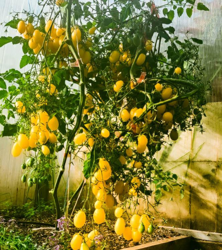Индет, до 2 м. Ранний. Помидоры удлиненной каплевидной формы, бледно-желтые, масса 25-40 грамм.