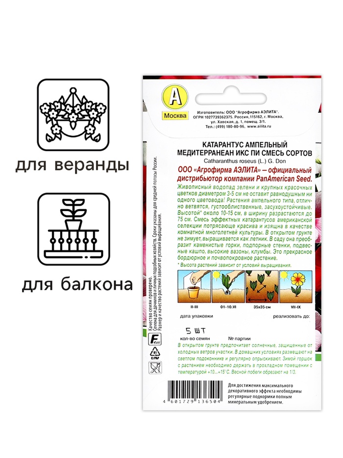 Растение катарантус ампельный из коллекции «Медитерранеан Икс Пи» станет ярким украшением любого цветника и клумбы. Эта смесь сортов обладает многообразием цветов, что придаст вашему саду удивительное летнее очарование. Данное растение однолетнее и светолюбивое, что делает его отличным выбором для солнечных участков.