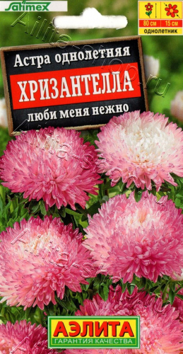 Настроение, воплощенное в цветке! Профессиональная серия однолетних астр для срезки «Хризантелла» – результат успешной селекции компании Satimex QUEDLINBURG GmbH. Окраски представлены в основном редкими и необычными для астр пастельными оттенками, сочетая качества и стойкость хризантемы и очарование астры. Соцветия плотные, великолепной формы и впечатляющего размера – до 12-15 см в диаметре! Жесткие лепестки загнуты к центру, не повреждаются ливнями и ветром. Растения мощные, высотой около 60-80 см. Цветоносные побеги крепкие и устойчивые. На одном кусте образуется до 10-15 цветков. Букет из таких удивительных астр сохраняет свежесть в вазе с водой гораздо дольше большинства известных срезочных сортов.