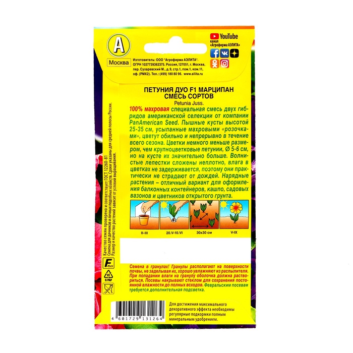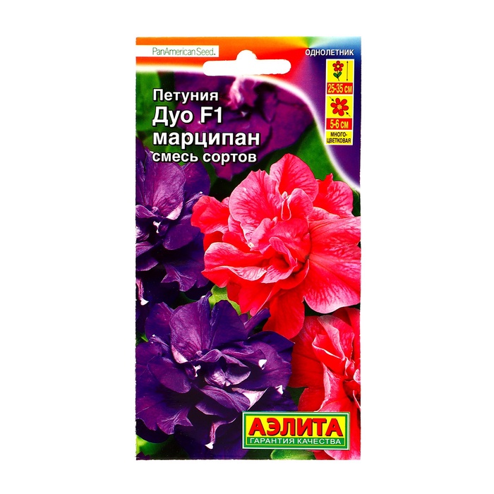100% махровая специальная смесь двух гибридов американской селекции из серии Дуо F1. Пышные кусты высотой 25-35 см, усыпанные махровыми «розочками», цветут обильно и непрерывно в течение всего сезона. Цветки немного меньше размером, чем крупноцветковые петунии, 5-6 см, но на кусте их значительно больше. Волнистые лепестки сложены неплотно, влага в цветках не задерживается, поэтому они практически не страдают от дождей. Нарядные растения –отличный вариант для оформления балконных контейнеров, кашпо, садовых вазонов и цветников открытого грунта.