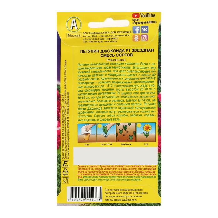 Петуния итальянской селекции компании Farao с непревзойденными характеристиками. Благодаря гену мужской стерильности, она дает ошеломляющее количество цветков и непрерывно цветет с весны до поздней осени. Адаптируется к широкому диапазону температур – успешно выдерживает кратковременные заморозки до – 5 °С и экстремальную жару. Гибрид формирует мощные кусты высотой 25-30 см с интенсивным ветвлением. В ширину они достигают 60-80 см, но при регулярных подкормках вырастают значительно большего размера. Цветки 7-8 см, не травмируются дождями и сильным ветром. Петуния серии Джоконда является серьезной конкуренткой сурфиниям, которые могут размножаться только вегетативно. Украсит собой клумбы, рабатки, подвесные корзины и садовые вазы.