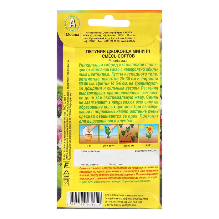 Семена в гранулах! Гранулы располагают на поверхности почвы, не заделывая их, хорошо увлажняют из распылителя. При попадании влаги на гранулу оболочка должна раствориться. Посевы накрывают стеклом для сохранения постоянной влажности до полных всходов. В фазе пяти-шести листьев проводят формирующую прищипку.