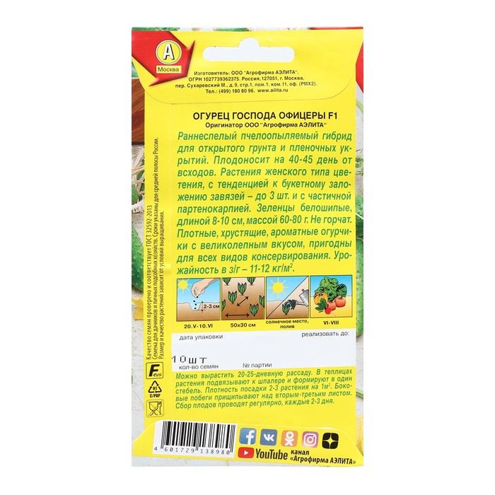 Скороспелый пчелоопыляемый гибрид для открытого грунта. Вступает в плодоношение на 40-45 день от всходов. Формирует растения преимущественно женского типа цветения, с тенденцией к букетному заложению завязей – до 3. Характеризуется стабильной урожайностью в любой сезон – от 5-6кг/м2в неблагоприятное лето до 11-12 кг/м2в «огуречный» год. Зеленцы бугорчатые (бугорки средней величины), темно-зеленые, длиной 8-10 см, массой 90-120 г. Не горчат. Плотные, хрустящие, ароматные огурчики с великолепным вкусом хороши для свежего потребления и пригодны для всех видов консервирования.