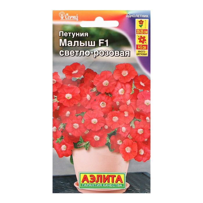 Удивительно рано и обильно цветущий гибрид петунии чешской селекции. Листвы почти не видно! Высаженные на постоянное место растения быстро образуют ветвистые компактные кустики "Ø" 25-30 см. Множество ярких цветов-граммофончиков "Ø" 4-5 см в течение всего сезона будут украшать ваши цветники и рабатки, балконные ящики и вазоны. Петунии лучше всего растут в рыхлой, питательной и влагоемкой почве. Периодические подкормки комплексным удобрением делают цветение более обильным. Центр куста не оголяется и растение не нуждается в формировании и прищипке. Гибрид устойчив к наиболее распространенным болезням культуры.