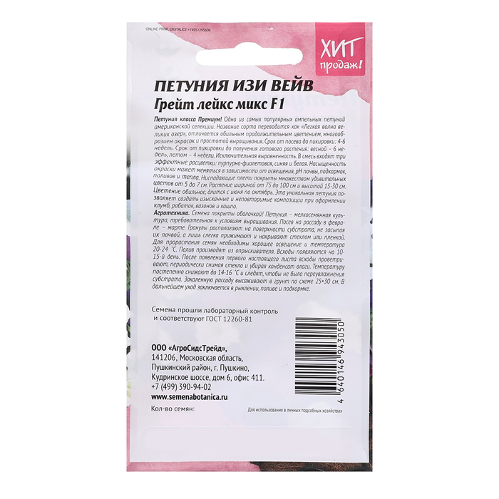 Знаменитый ампельный гибрид многоцветковой петунии, удивляющий своим обильным цветением от американской компании PanAmerican Seed. Характеризуется длительным периодом цветения и устойчивостью к неблагоприятным условиям. Дословно название серии переводится, как «легкая волна», это действительно так же красиво - целью селекции было создание легкого в уходе и хорошо растущего в условиях короткого светового дня растения. Ниспадающие плети покрыты множеством удивительных миниатюрных цветов. Данная серия наращивает массу растения сначала "куполом", достигая 25-38 см в ширину и диаметром 15-30 см, формируя в последствии плети до 1 метра, обильно усыпанные крупными цветками. Цветение обильное, длится с июня по октябрь. Этот уникальный гибрид позволяет создать изысканные и неповторимые композиции при оформлении клумб, рабаток, вазонов и кашпо. Также петунию данной серии смело можно сажать в балконные ящики. Агротехника: Семена покрыты оболочкой! Петуния – мелкосемянная культура, требовательная к условиям выращивания. Посев на рассаду в феврале-марте. Гранулы располагают на поверхности субстрата, не засыпая их почвой, а лишь слегка прижимают и накрывают стеклом или пленкой. Для прорастания семян необходимо хорошее освещение и температура 20-24˚С. Полив производят из опрыскивателя. Всходы появляются на 10-15 день. После появления первого настоящего листа всходы проветривают, периодически снимая стекло и убирая конденсат влаги. Температуру постепенно снижают до 14-16˚С и следят, чтобы не было переувлажнения субстрата. Закаленную рассаду высаживают в грунт по схеме 25×30 см. В дальнейшем уход заключается в рыхлении, поливе и подкормах.рих-код –