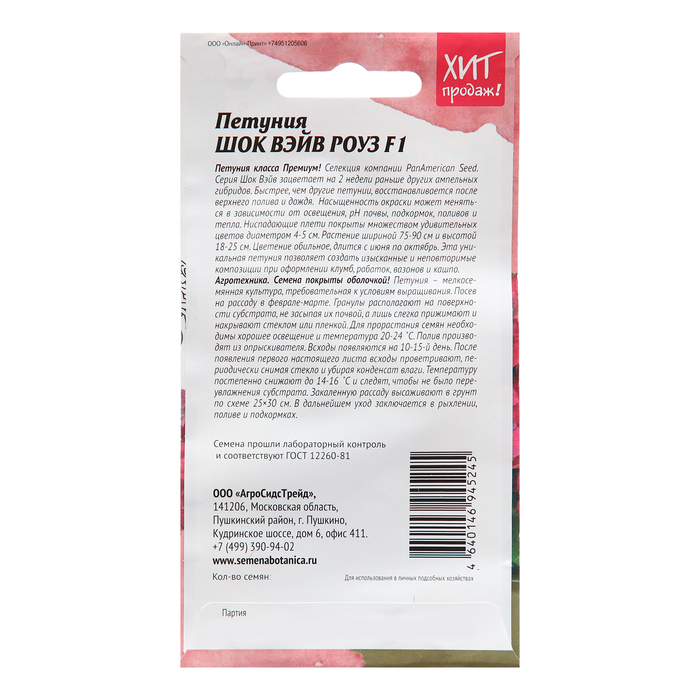 Петуния класса Премиум! Селекция компании PanAmerican Seed. Серия Шок Вейв зацветает на 2 недели раньше других ампельных гибридов. Быстрее чем другие петунии восстанавливается после верхнего полива и дождя. Оригинальная окраска от нежной серебристо-лавандовой до темно-синей. Насыщенность окраски может меняться в зависимости от освещения, PH почвы, подкормок, поливов и тепла. Ниспадающие плети покрыты множеством удивительных цветов 4-5 см. Растение шириной 75-90 см и высотой 18-25 см. Цветение обильное, длится с июня по октябрь. Эта уникальная петуния позволяет создать изысканные и неповторимые композиции при оформлении клумб, рабаток, вазонов и кашпо. Агротехника: Семена покрыты оболочкой! Петуния – мелкосемянная культура, требовательная к условиям выращивания. Посев на рассаду в феврале-марте. Гранулы располагают на поверхности субстрата, не засыпая их почвой, а лишь слегка прижимают и накрывают стеклом или пленкой. Для прорастания семян необходимо хорошее освещение и температура 20-24˚С. Полив производят из опрыскивателя. Всходы появляются на 10-15 день. После появления первого настоящего листа всходы проветривают, периодически снимая стекло и убирая конденсат влаги. Температуру постепенно снижают до 14-16˚С и следят, чтобы не было переувлажнения субстрата. Закаленную рассаду высаживают в грунт по схеме 25×30 см. В дальнейшем уход заключается в рыхлении, поливе и подкормах.рих-код –