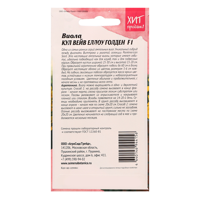 Одна из самых ранних серий ампельных виол. Уникальный гибрид между фиалками виттрока и рогатой селекции PanAmerican Seed. Это настоящие ампельныевиолы, которые имеют габитус, идеальный подходящий как для клумб, так и для подвесных корзин. Образует кустик шириной 25-30 см и высотой 15-20 см. При правильной агротехнике образует побеги до 60 сантиметров в длину. Образует настоящее облако из цветов, размер 5-6 см каждый. На гибких свисающих побегах образуется масса ярких цветов, устойчивых к низким температурам и неблагоприятным погодным условиям. Цветение обильное и продолжительное, с начала весны и на протяжении всего лета. Агротехника: Виолу можно выращивать в одно- и двухлетней культуре. 1 способ: на рассаду семена высевают в конце февраля – начале марта, слегка присыпая легким субстратом или песком. Посевы увлажняют из опрыскивателя и накрывают пленкой или стеклом. Всходы появляются на 14-20 день. Сеянцы необходимо притенять. В грунт рассаду высаживают в конце апреля – начале мая по схеме 20х20 см. 2 способ: семена высевают в июне-июле в открытый грунт, сильно не заглубляя. Осенью рассаду высаживают на постоянное место по схеме 20х20 см. Цветение начинается на следующий год в мае и продолжается несколько месяцев.