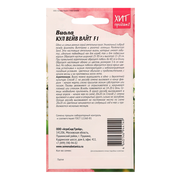 Одна из самых ранних серий ампельных виол. Уникальный гибрид между фиалками виттрока и рогатой селекции PanAmerican Seed. Это настоящие ампельныевиолы, которые имеют габитус, идеальный подходящий как для клумб, так и для подвесных корзин. Образует кустик шириной 25-30 см и высотой 15-20 см. При правильной агротехнике образует побеги до 60 сантиметров в длину. Образует настоящее облако из цветов, размер 5-6 см каждый. На гибких свисающих побегах образуется масса ярких цветов, устойчивых к низким температурам и неблагоприятным погодным условиям. Цветение обильное и продолжительное, с начала весны и на протяжении всего лета. Агротехника: Виолу можно выращивать в одно- и двухлетней культуре. 1 способ: на рассаду семена высевают в конце февраля – начале марта, слегка присыпая легким субстратом или песком. Посевы увлажняют из опрыскивателя и накрывают пленкой или стеклом. Всходы появляются на 14-20 день. Сеянцы необходимо притенять. В грунт рассаду высаживают в конце апреля – начале мая по схеме 20х20 см. 2 способ: семена высевают в июне-июле в открытый грунт, сильно не заглубляя. Осенью рассаду высаживают на постоянное место по схеме 20х20 см. Цветение начинается на следующий год в мае и продолжается несколько месяцев.