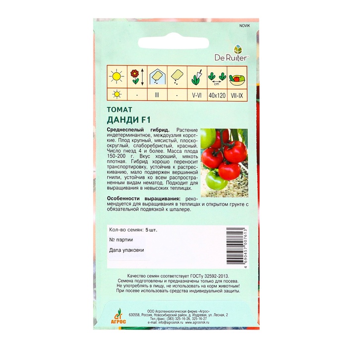 Семена томатов «Данди» F1 идеально подходят как для опытного садовода, так и для новичка. Эти гибридные семена гарантируют урожай сочных, красных помидоров, способных стать ни на что не похожим украшением вашего стола. Срок созревания у них средний, что позволяет наслаждаться плодами достаточно быстро.