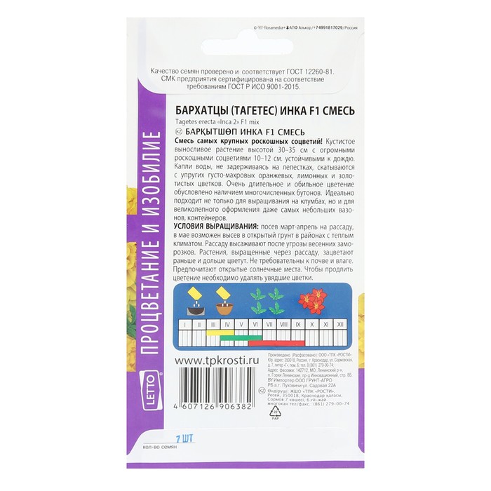 Смесь самых крупных роскошных соцветий. Кустистое выносливое растение высотой 30-35 см с огромными роскошными соцветиями 10-12 см. устойчивыми к дождю. Капли воды, не задерживаясь на лепестках, скатываются с упругих густо-махровых оранжевых, лимонных и золотистых цветков. Очень длительное и обильное цветение обусловлено наличием многочисленных бутонов. Идеально подходит не только для выращивания на клумбах, но и для великолепного оформления даже самых небольших вазонов, контейнеров.