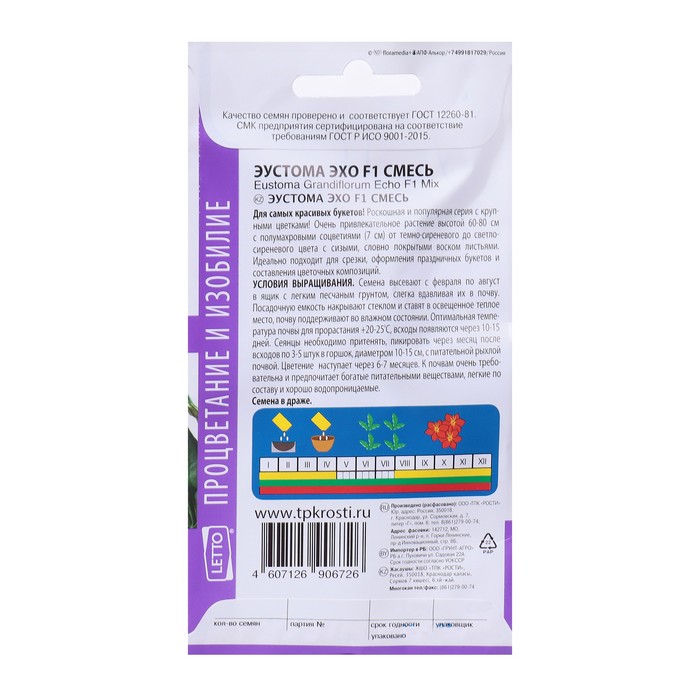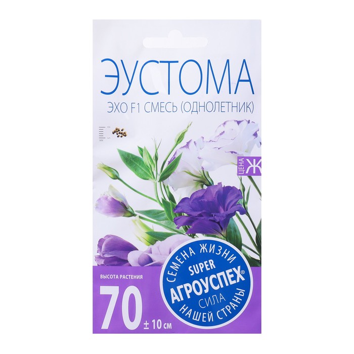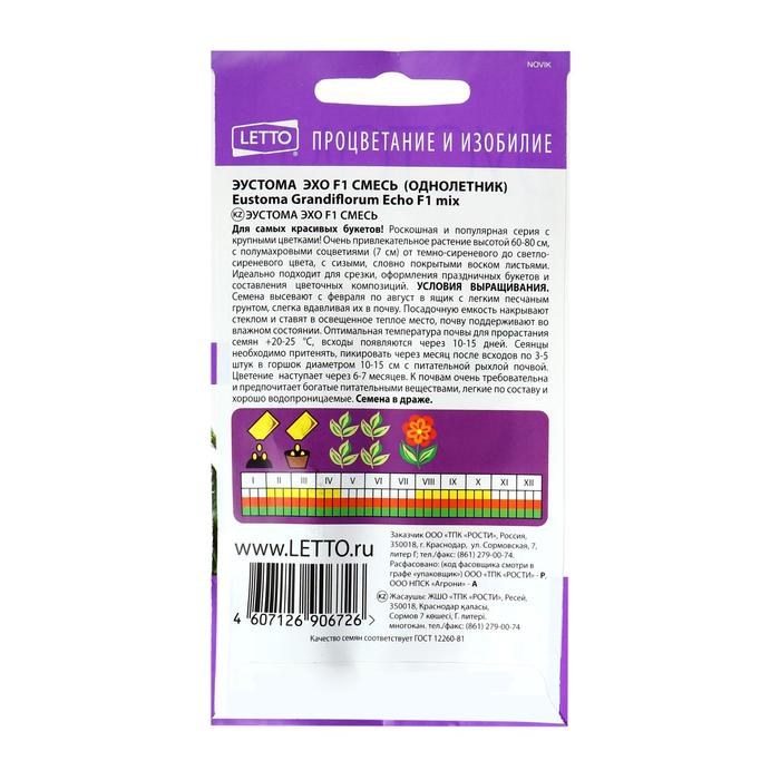 Семена цветов «Эустома Эхо F1 смесь», многолетник, драже, 5. — привлекательное растение высотой 80–100 см с полумахровыми соцветиями (7 см) от тёмно-сиреневого до светло-сиреневого цвета с сизыми, словно покрытыми воском листьями.
