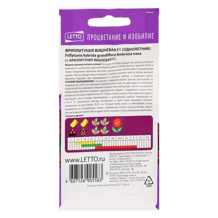Семена цветов «Фриллитуния вишнёвая, петуния F1», однолетник, 10. — эффектное растение с гофрированным краем лепестков, создающим совершенно уникальную форму цветка. Обильно цветущие растения создают в цветнике и кашпо впечатление кружевного облака.