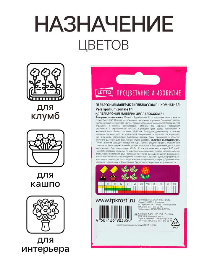 Семена комнатных цветов Пеларгония "Эйплблоссом", 4.