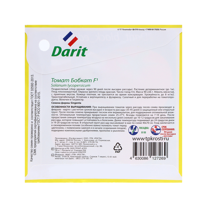 Включен в Госреестр по Северо-Кавказскому (6) региону для выращивания в открытом грунте. Салатный и для переработки на томатопродукты. Позднеспелый. Растение детерминантное. Лист крупный, зеленый до темно-зеленого. Соцветие простое. Плодоножка с сочленением. Плод плоскоокруглый, ребристый до сильноребристого, плотный. Окраска незрелого плода светло-зеленая, зрелого - красная. Число гнезд 4-6. Масса плода 90-226 г. Вкусовые качества свежих плодов хорошие, томатного сока - хорошие и отличные. Содержание сухого вещества в соке 5,7-6,2%, общего сахара 3,4-4,1%. Урожайность товарных плодов 224-412 ц/га, на уровне стандартов Волгоградский 5/95 и Титан. Выход товарных плодов 75-96%. Транспортабельный. Устойчив к вертициллезу и фузариозу.