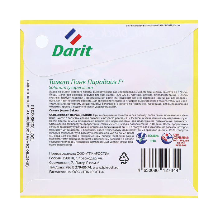 Включен в Госреестр по Российской Федерации для выращивания в открытом грунте и под пленочными укрытиями в ЛПХ. Требует подвязки и формирования растений. Салатный. Среднеспелый. Растение индетерминантное. Лист среднего размера, зеленый. Соцветие простое. Плодоножка с сочленением. Плод плоскоокруглый, слаборебристый, плотный. Окраска незрелого плода светло-зеленая, зрелого - розовая. Число гнезд 4 и более. Масса плода 125-140 г. Вкус отличный. Урожайность товарных плодов 3,9 кг/кв.м. Устойчив к вертициллезу, фузариозному увяданию, ВТМ.