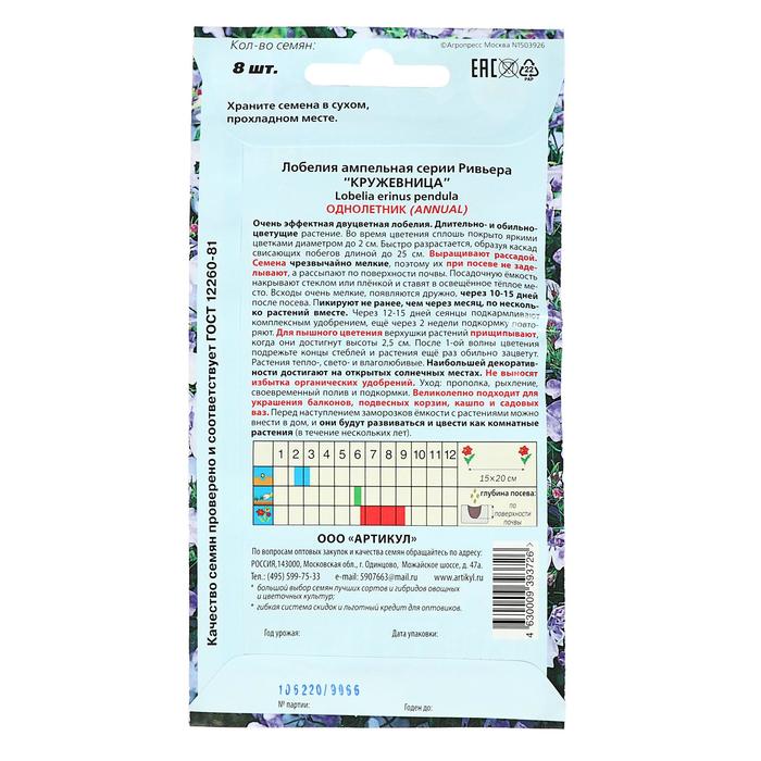 Очень эффектная двуцветная лобелия. Длительно- и обильноцветущие растение. Во время цветения сплошь покрыто яркими цветками диаметром до 2 см. Быстро разрастается, образуя каскад свисающих побегов длиной до 25 см. Выращивают рассадой. Семена чрезвычайно мелкие, поэтому их при посеве не заделывают, а рассыпают по поверхности почвы. Посадочную ёмкость накрывают стеклом или плёнкой и ставят в освещённое тёплое место. Всходы очень мелкие, появляются дружно, через 10-15 дней после посева. Пикируют не ранее, чем через месяц, по несколько растений вместе. Через 12-15 дней сеянцы подкармливают комплексным удобрением, ещё через 2 недели подкормку повторяют. Для пышного цветения верхушки растений прищипывают, когда они достигнут высоты 2,5 см. После 1-ой волны цветения подрежьте концы стеблей и растения ещё раз обильно зацветут. Растения тепло-, свето- и влаголюбивые. Наибольшей декоративности достигают на открытых солнечных местах. Не выносят избытка органических удобрений.