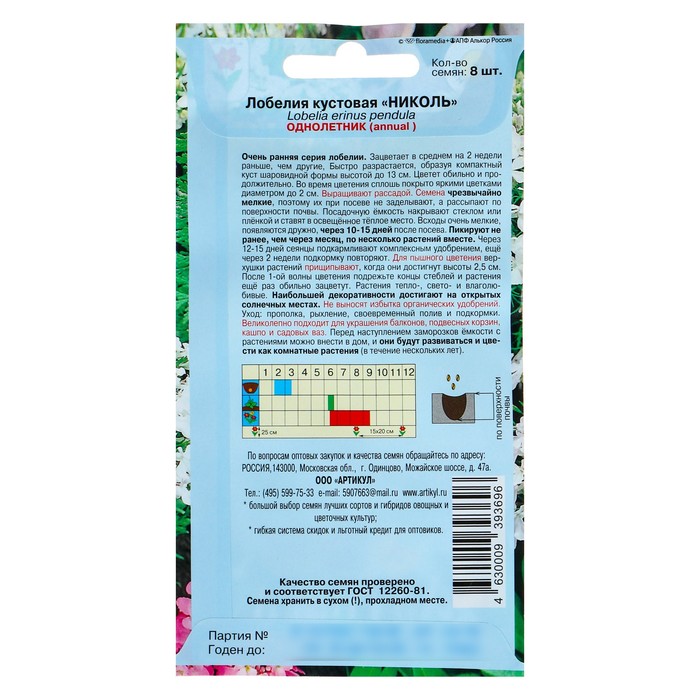 Выращивают рассадой. Семена чрезвычайно мелкие, поэтому их при посеве не заделывают, а рассыпают по поверхности почвы. Посадочную ёмкость накрывают стеклом или плёнкой и ставят в освещённое тёплое место. Всходы очень мелкие, появляются дружно, через 10-15 дней после посева. Пикируют не ранее, чем через месяц, по несколько растений вместе. Через 12-15 дней сеянцы подкармливают комплексным удобрением, ещё через 2 недели подкормку повторяют. Для пышного цветения верхушки растений прищипывают, когда они достигнут высоты 2,5 см.