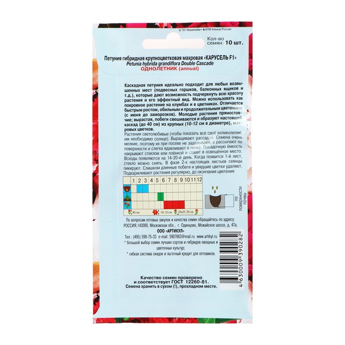 Каскадная петуния идеально подходит для любых возвышенных мест (подвесных горшков, балконных ящиков и т.д.), которые дают возможность подчеркнуть всю красоту растения и его эффектный вид. Можно использовать как покровное растение на клумбах и в цветниках. Отличается быстрым ростом, обильным и продолжительным цветением (с июня до заморозков). Молодые растения прямостоячие; вырастая, побеги свешиваются и образуют настоящий каскад (до 40 см) из крупных (10-12 см в диаметре), махровых цветков. Растения светолюбивые (чтобы показать всё своё великолепие, им необходимо солнце).