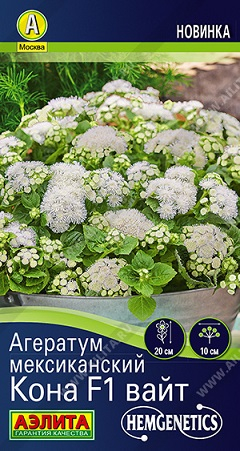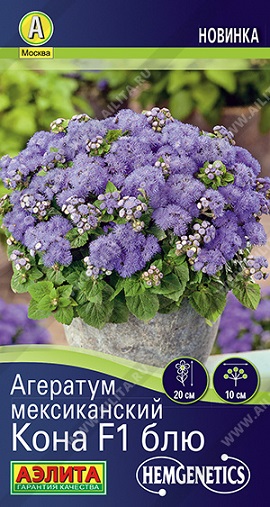 Суперкомпактный однолетний агератум от голландской компании Hem Genetics с генетически обусловленной карликовостью побегов. При контейнерном выращивании высота растения не превышает 10 см, в открытом грунте – 20 см. Ароматные пушистые соцветия диаметром 7-10 см украшают кустики до заморозков. Цветение раннее и обильное. Кустики агератума образуют плотный ковер из многочисленных соцветий и прекрасно смотрятся в цветочных композициях с другими растениями. Обладают высокой устойчивостью к неблагоприятным погодным условиям. Подходят для контейнерной и горшечной культуры.