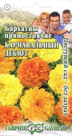 Одно из самых распространенных однолетних растений семейства Астровые. Образует куст высотой 70 см с ясно выраженным главным побегом. Соцветия крупные (8-10 см в диаметре) густомахровые, шаровидные, абрикосовой, ярко-оранжевой, лимонно-желтой окраски. Цветет с июня по сентябрь. Бархатцы светолюбивы и теплолюбивы, заморозков не переносят, к почвам нетребовательны, но предпочитают плодородные легкие почвы. Выращивают, как правило, рассадным способом. Посев проводят во второй половине марте-начале апреля. Всходы появляются через 4-8 дней после посева, сеянцы пикируют в фазе 2-го настоящего листа. Рассаду высаживают в начале июня, расстояние между растениями 30-35 см. Используют для посадки на клумбах, в группах, для получения срезки.