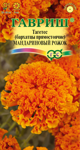 Необычайно красивые бархатцы, высота растений в момент появления первых соцветий около 30 см, в период массового цветения побегов второго порядка — 50-60 см. Растение образует раскидистый, средневетвистый, слабооблиственный кустик. Листья мелкие, тёмно-зелёные. Соцветия ярко-оранжевого цвета, диаметром до 6 см, полумахровые. язычковые цветки, сросшиеся в виде трубки, стерильные, с ровным краем. Трубчатые центральные цветки обоеполые, мелкие. Относительно устойчив к гнилям и пятнистостям. Хорошо подойдёт для средней части миксбордера, для посадки на клумбах, рабатках, бордюрах. Цветет с июня до заморозков. Бархатцы светолюбивы и теплолюбивы, предпочитают умеренно плодородные легкие почвы. Посев на рассаду проводят во второй половине марта-начале апреля. Всходы появляются через 4-8 дней после посева, сеянцы пикируют в фазе 2-го настоящего листа. Рассаду высаживают в начале июня, расстояние между растениями 30-35 см. Посев в открытый грунт проводят в мае.
