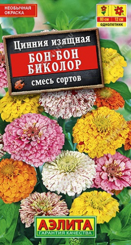 Цветы Цинния Бон-бон Биколор, смеь 0,3 г ц/п Аэлита (однол.)