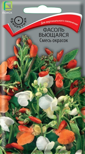 Великолепное ампельное растение! Стебли тонкие вьющиеся, поднимаются на высоту 2,5 м. Листья многочисленные, темно-зеленые. Цветы белые, лососево-розовые, оранжево-красные. Цветет обильно с июля до сентября. Декоративную ценность представляют и плоды растения – крупные, шероховатые бобы. Используют для вертикального озеленения и устройства пирамид на газонах.