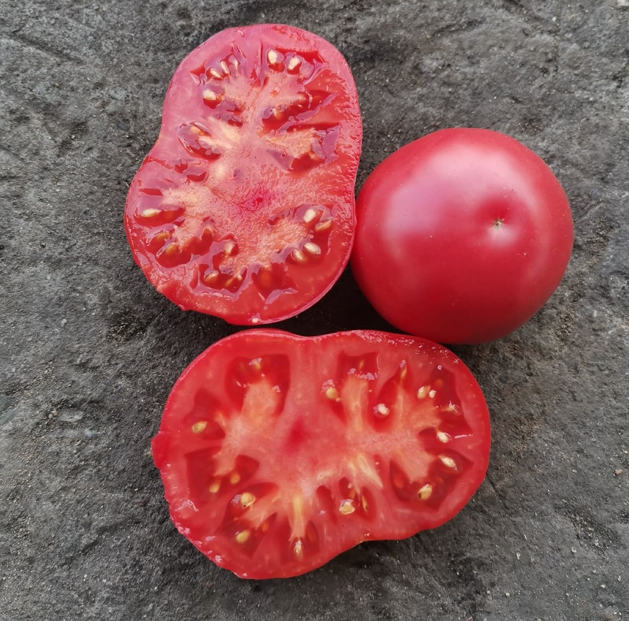 Гном ДИКИЙ ФРЕД ( Dwarf Wild Fred ) - дет, штамб, высота 60-70 см, плоды плоскоокруглые, вишнево-красные, вес 150-250 гр, вкус отлично сбалансированный, настоящий томатный, сочные и ароматные.