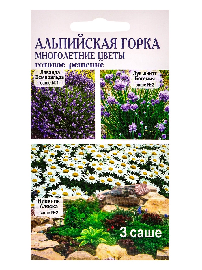 Гармония ароматов и красок для вашего сада! Набор «Альпийская горка» (0,06 г) — сбалансированная композиция из лаванды, лука шнитт и нивяника. Создайте живописный уголок, где декоративность сочетается с практической пользой.