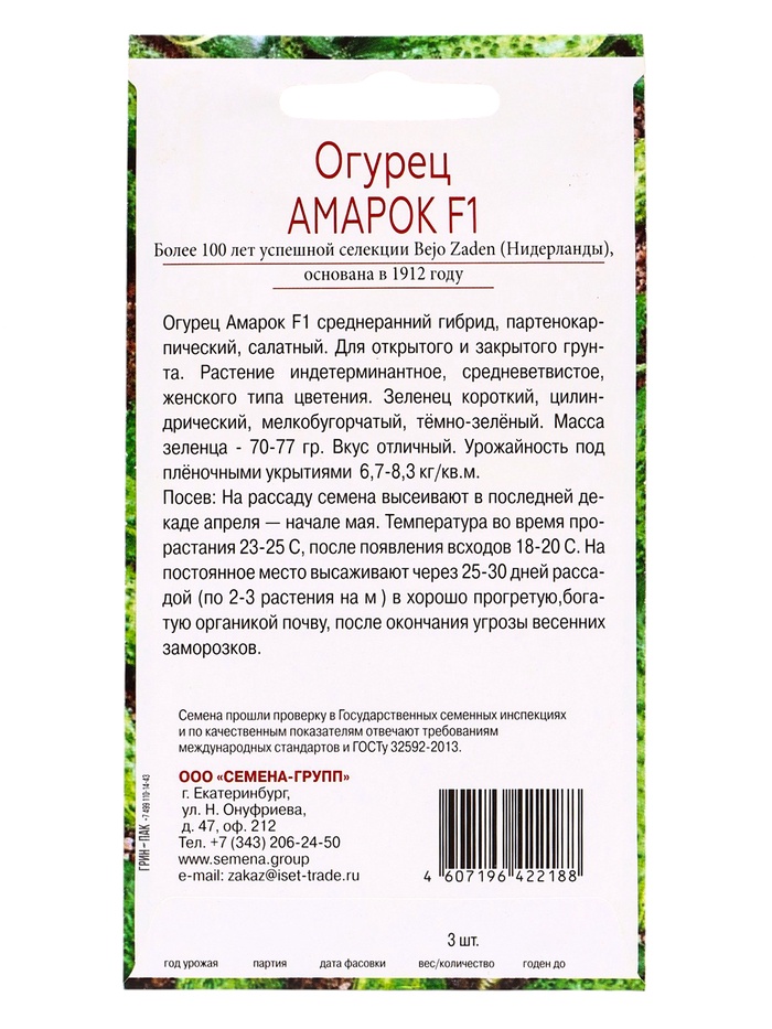 Гарантированный урожай без опыления! Огурец «Амарок F1» (3 семени) — партенокарпический гибрид с безупречной всхожестью. Формирует ровные корнишоны без участия пчел, подходит для теплиц, балконов и открытого грунта.