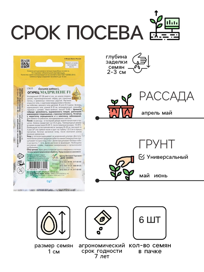 Cуперранний (38-40 дней), высокоурожайный гибрид. Плоды крупнобугорчатые, однородной цилиндрической формы, длиной 9-11 см, без горечи, не перерастают долгое время, устойчив к перепаду температур.