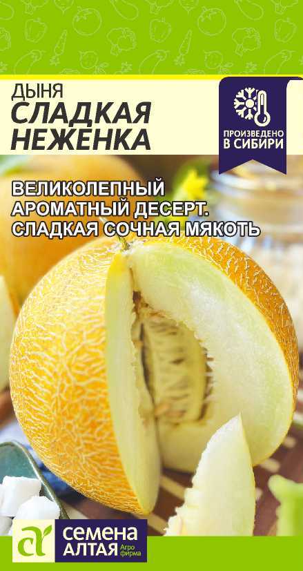 Среднеспелый сорт. Созревание наступает на 90-100 день. Плод округло-овальный, с редкой сеткой, ярко-желтый, без рисунка, массой 1-2 кг. Мякоть белая, толстая, очень ароматная и сладкая. Сорт устойчив к мучнистой росе. Транспортабельность средняя.