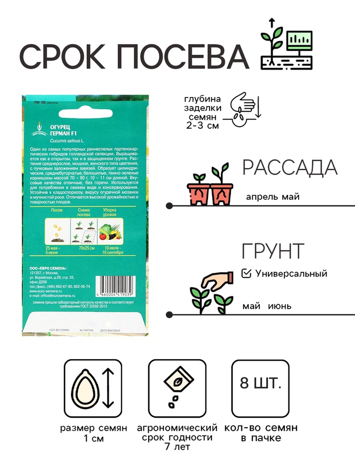 Семена огурца "Герман", F1 - это высококачественный гибрид огурцов, который обладает отличными вкусовыми качествами и высокой урожайностью. Этот сорт огурцов является одним из самых популярных среди огородников и садоводов.Каждый пакет содержит семена, которые гарантированно приведут к выращиванию здоровых и сильных растений. Семена "Германа", F1 идеально подходят для выращивания как в теплицах, так и на открытом грунте.Огурцы "Герман", F1 имеют прекрасный вкус и аромат, а их форма и размер делают их идеальными для использования в кулинарии. Этот сорт огурцов имеет высокую устойчивость к болезням и вредителям, что позволяет получать стабильный урожай даже при неблагоприятных условиях.Выращивание огурцов "Герман", F1 - это простой и увлекательный процесс, который позволяет получить свежие и вкусные овощи прямо из своего сада.